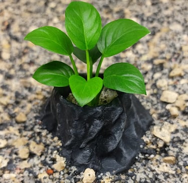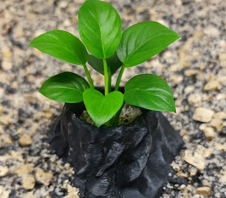 Piedra decorativa con cavidad central para plantas acuáticas.