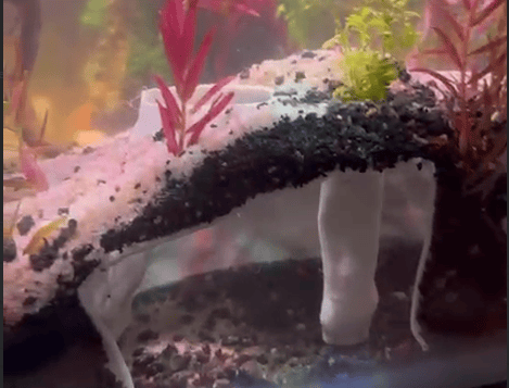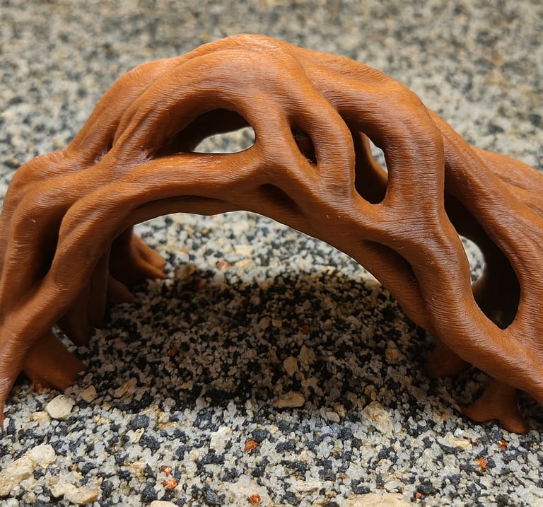 Arco de raíces con túnel interno, perfecto para plantar anubias o helechos.